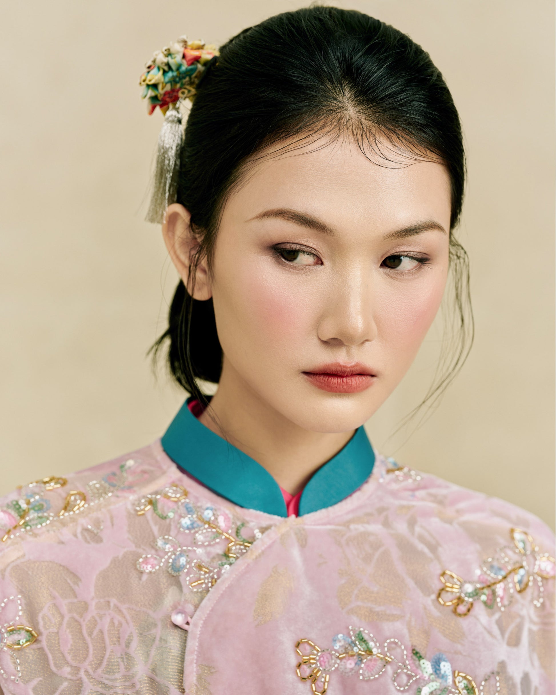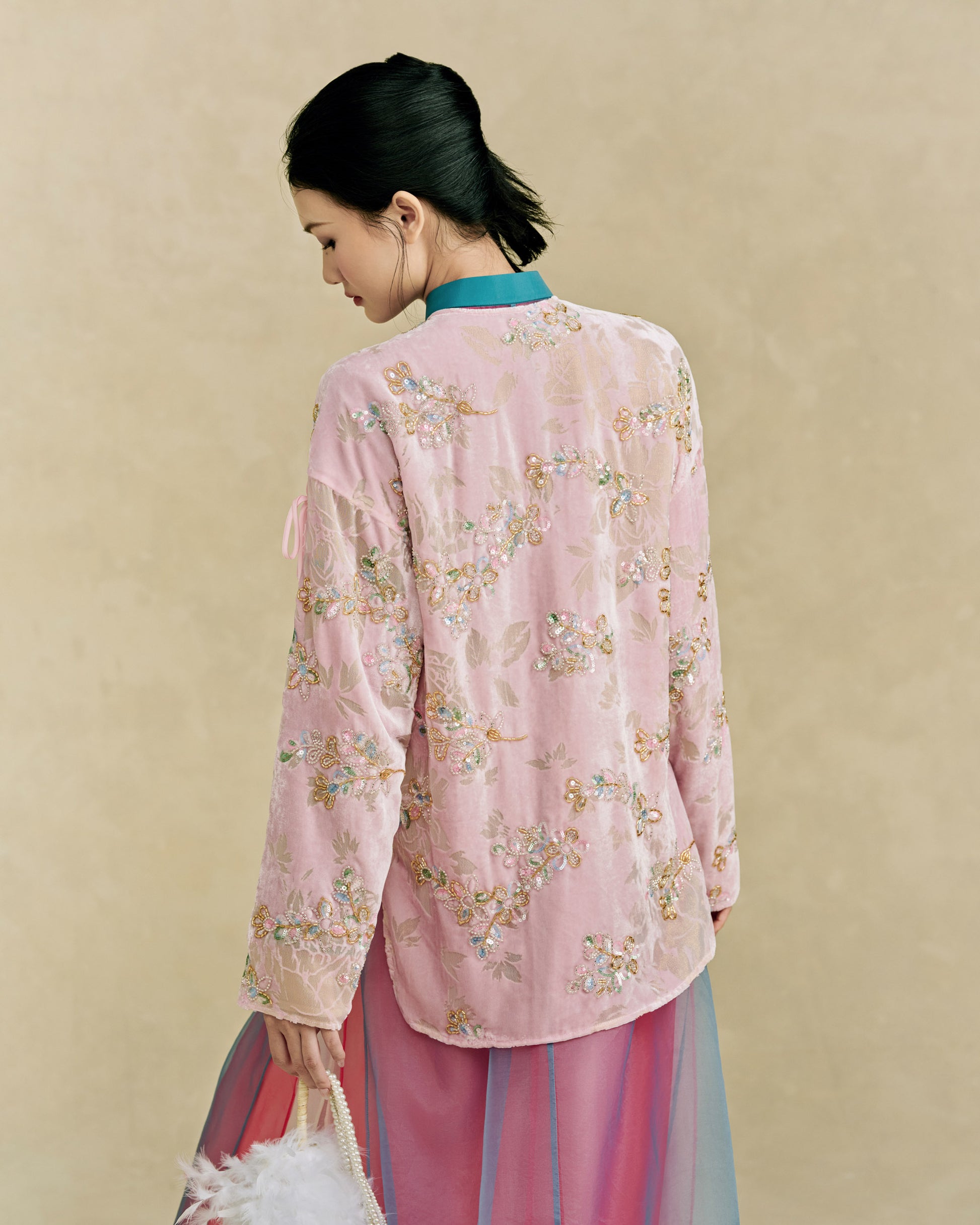 - Tay áo dài, phối dây thắt nơ