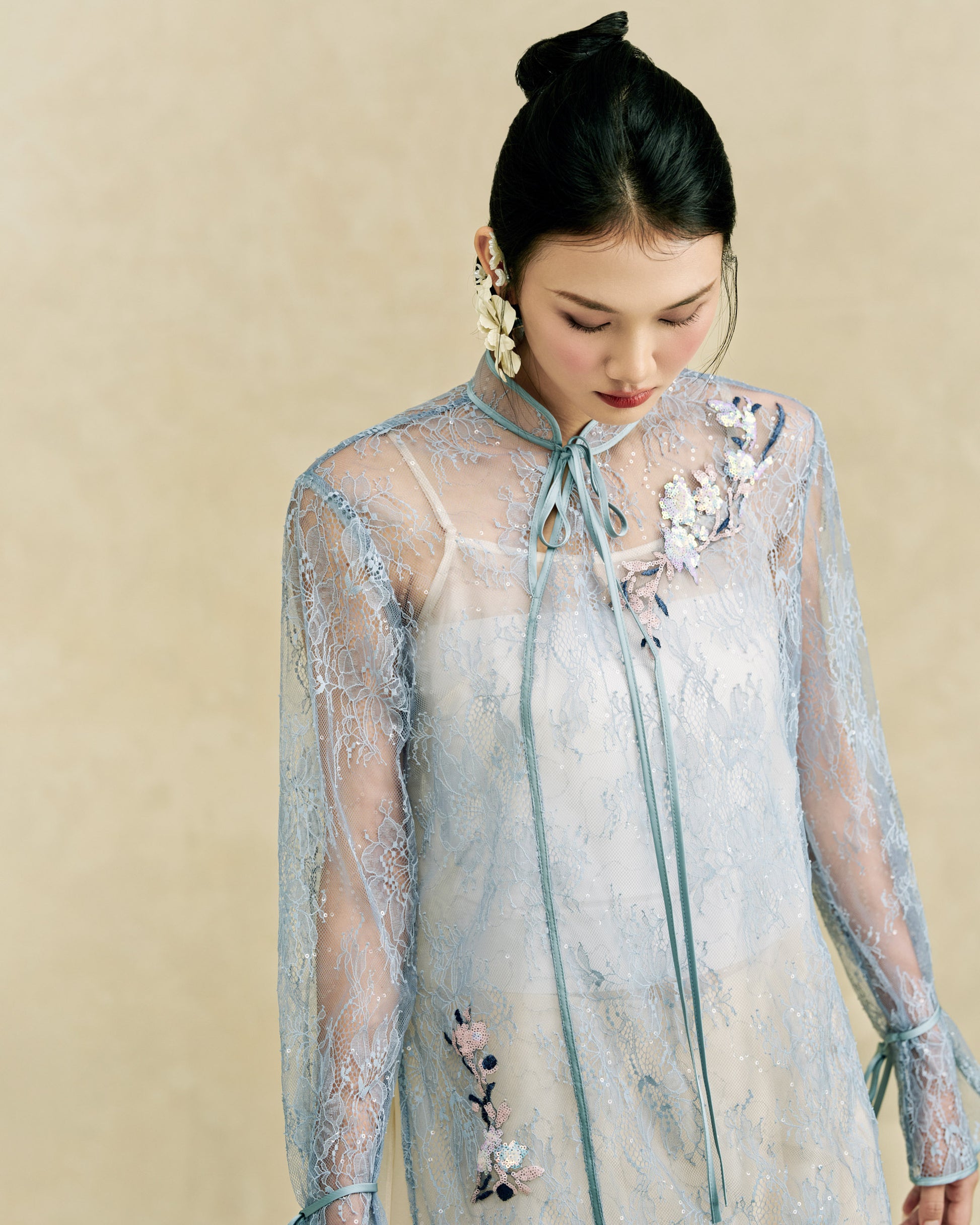 - Áo lớp ngoài: Ren kim sa