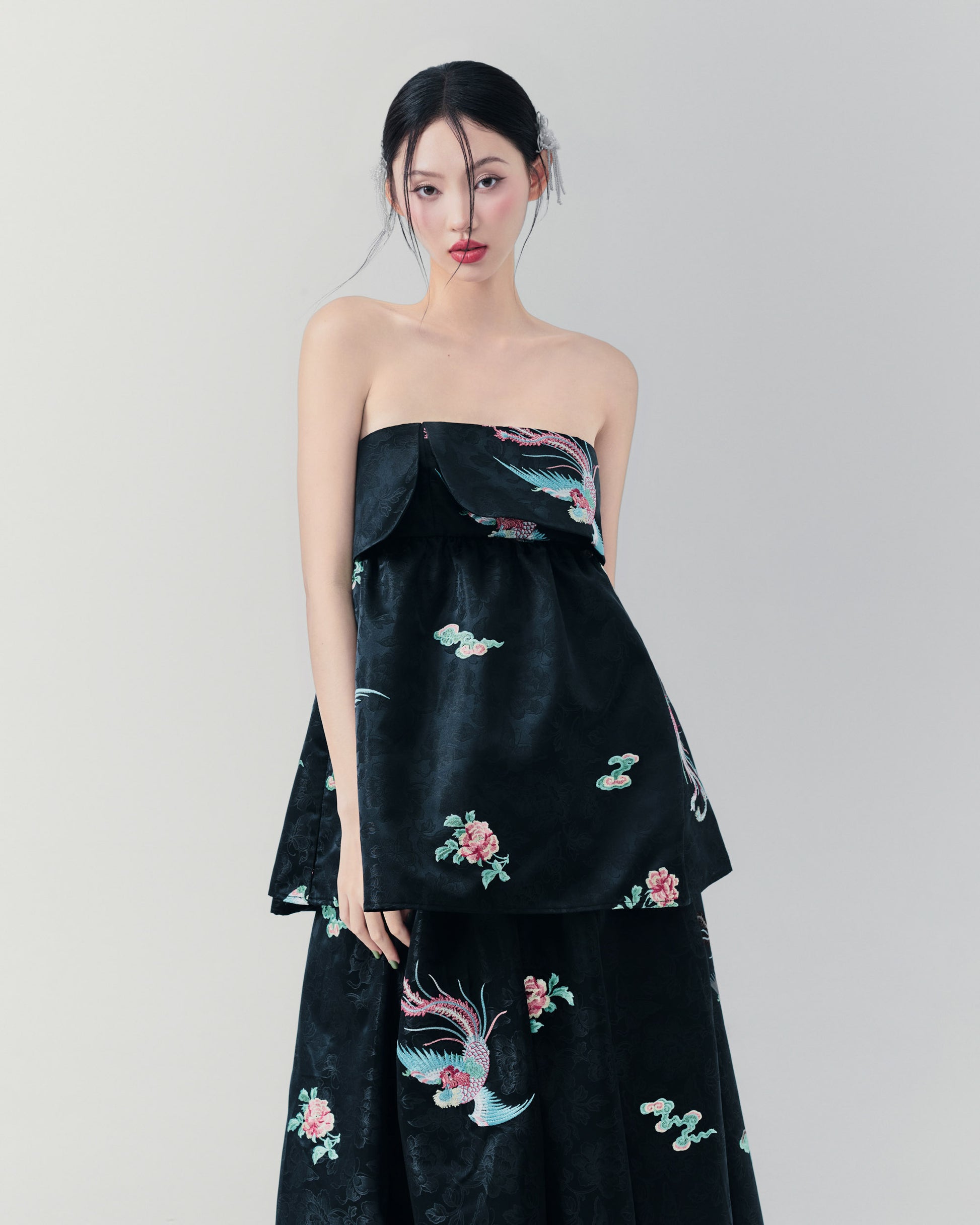 - Gấm thêu phượng hoàng phối latin