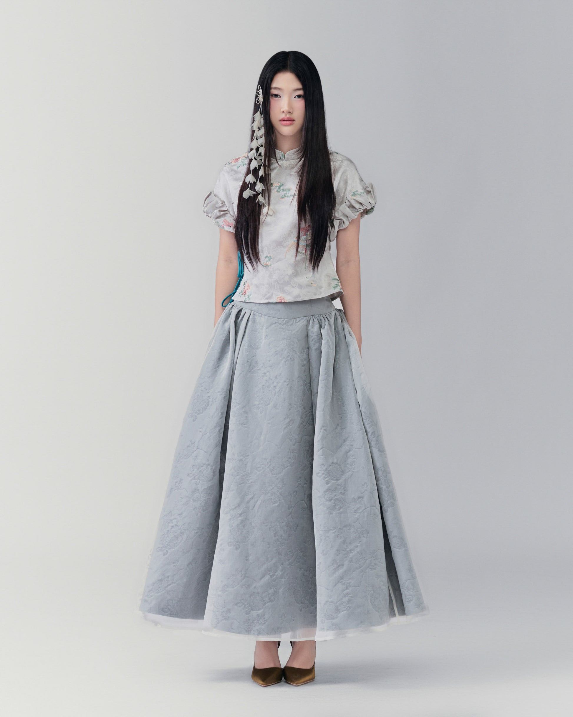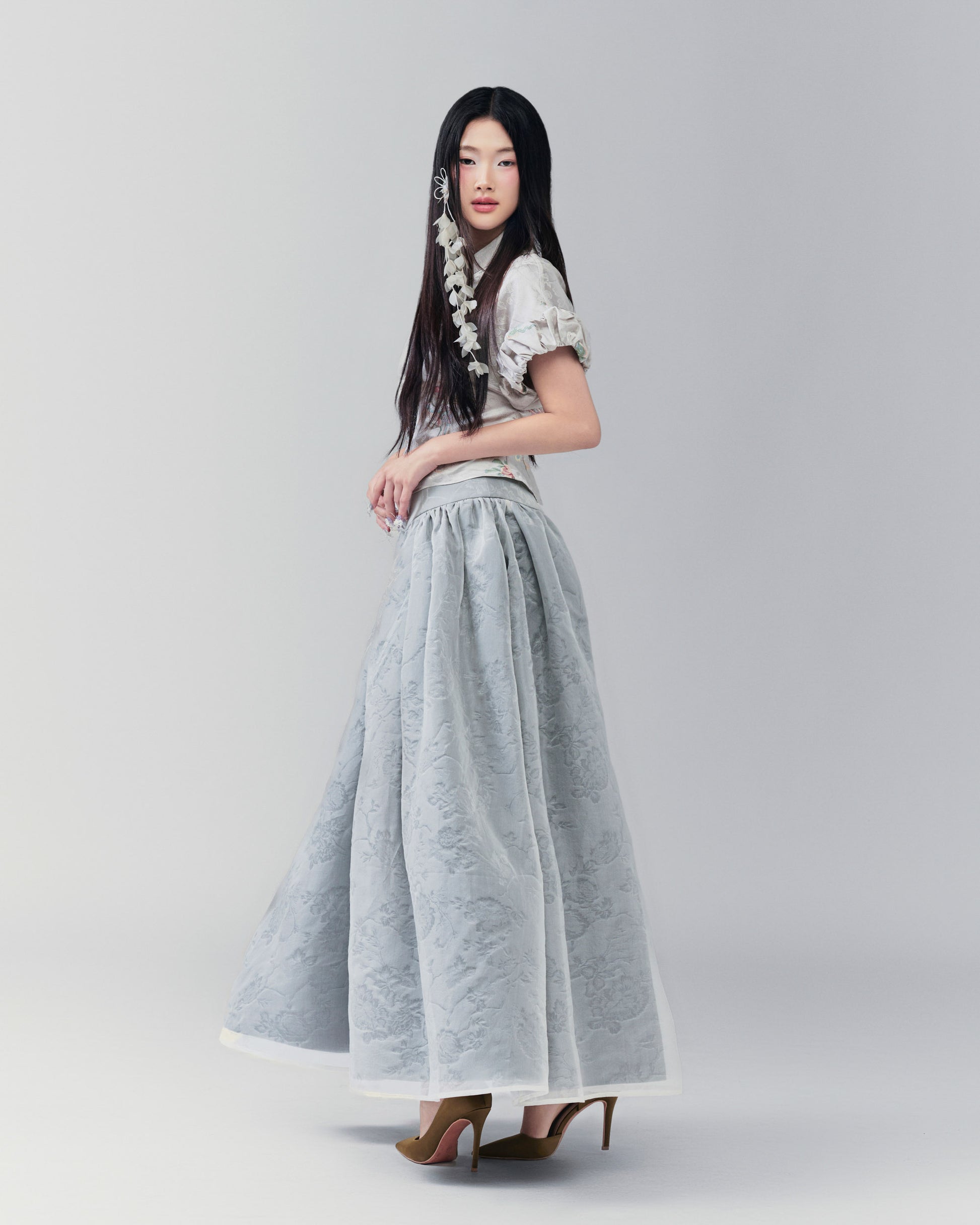 - Chân váy dài xếp ly